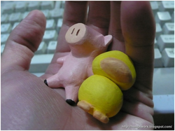 有關FARM的一些小故事︰鴨仔的造型其實是參考我幾歲時媽給我的一個毛公仔,由於這個公仔跟我很多年,破了又補,補了又破,有些東西就是不知不覺跟你一起很多年,當年我的玩具都早掉了,就是它跟我最久。大家都好像很有縁似的。現在它就放於我的珍藏盒內。另外,那隻豬當然是來自益力多,我諗大家細個都應該整過喇。 放在手上好似好珍貴既半製成品。